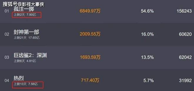 近期,由大鹏导演,黄渤、王一博等人主演的电影《热烈》正在热映,目前该片已经上映13天了,票房仅7.56亿,距离十亿的门槛还有一段长距离,而另一部仅上映2天的电影《孤注一掷》已经斩获了7.9亿的票房,两相对比之下,《热烈》这部片子的结果可想而知了。
