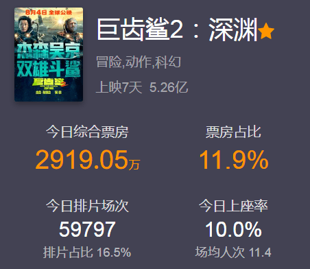 原标题:七天票房5.26亿,我敢说:《巨齿鲨2》是与暑期档更匹配的爆米花片