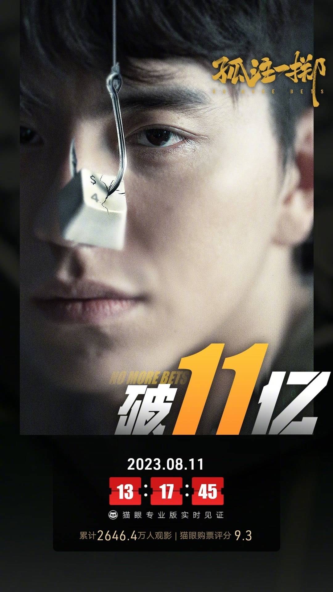 搜狐娱乐讯 据猫眼专业版数据,截至8月11日13:17,宁浩监制,申奥执导,张艺兴、金晨、咏梅、王传君、王大陆、周也孙阳主演的反诈题材电影《孤注一掷》上映第4天 ,累计票房破11亿,暂居2023内地电影票房榜第九位。