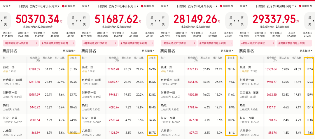 8.7-8.10连续四天上座率第一