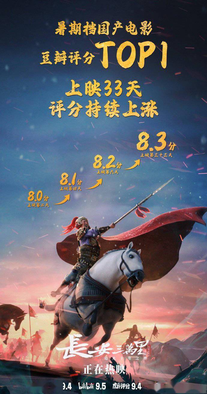 原标题:《长安三万里》评分上涨至8.3 跻身动画影史前二