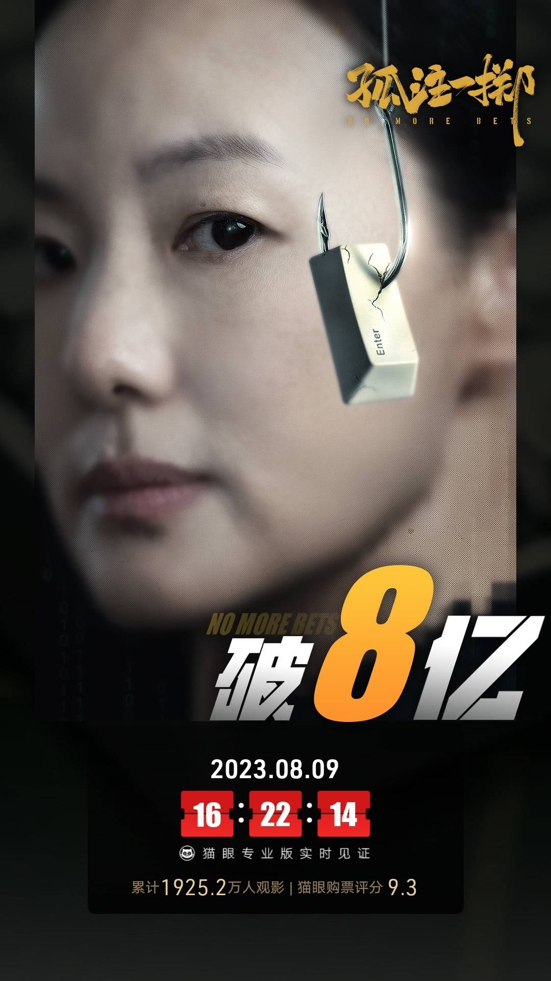 搜狐娱乐讯 据猫眼专业版数据,截至8月9日16:22,宁浩监制,申奥执导,张艺兴、金晨、咏梅、王传君、王大陆、周也、孙阳主演的反诈题材电影《孤注一掷》上映第2天 ,累计票房破8亿,累计观影人次1925.2万。