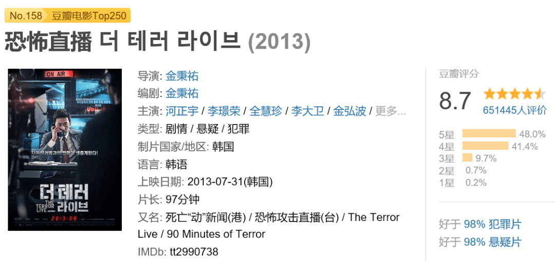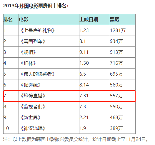 《恐怖直播》虽有正当红的河正宇坐镇主演,但不论是导演知名度,还是制作体量都不具有竞争力。