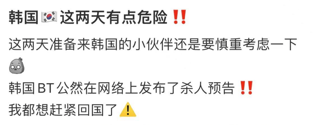 还有很多在韩的国人,也开始在微博、小红书的等平台发帖告诉大家近期不要去韩国。
