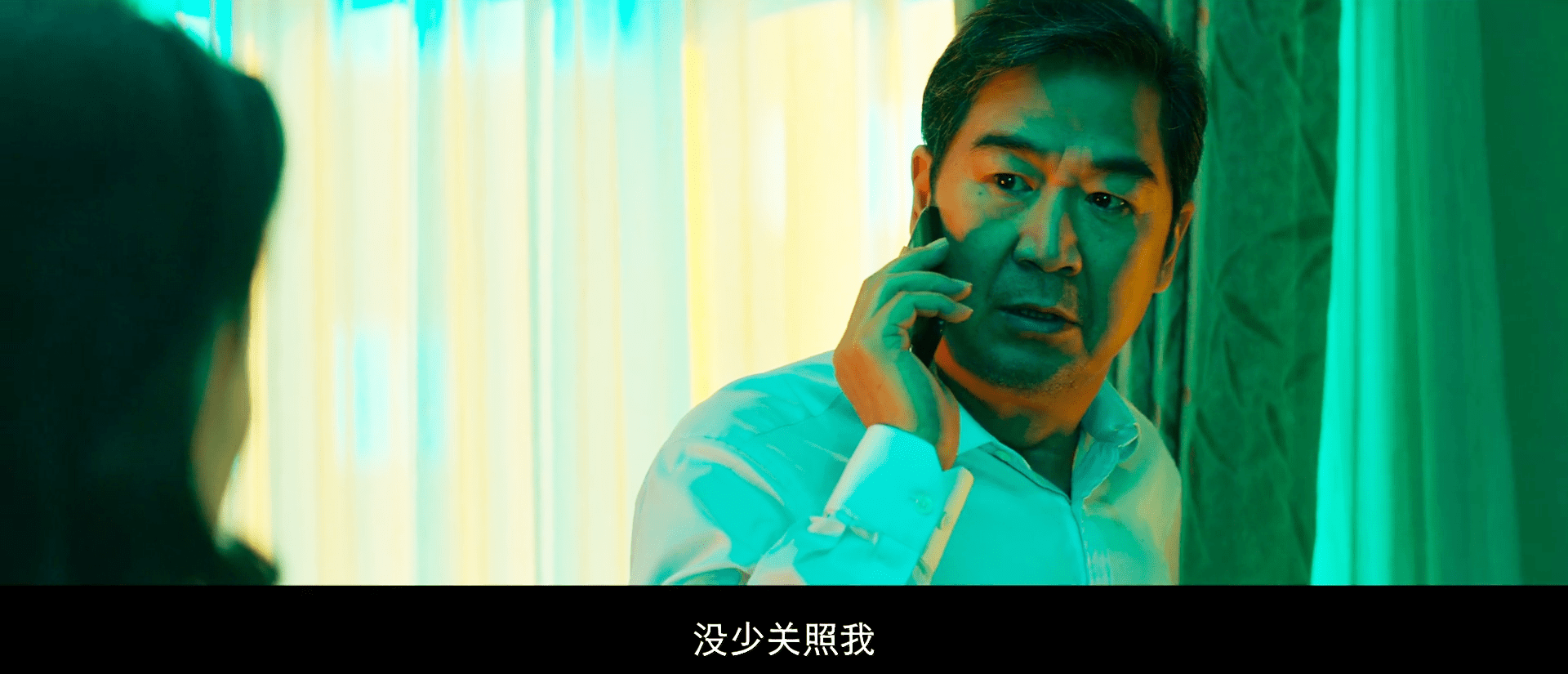 我们不难发现,上文提到的家庭吃饭戏里,雷佳音身后背景的窗帘就是黄色的。