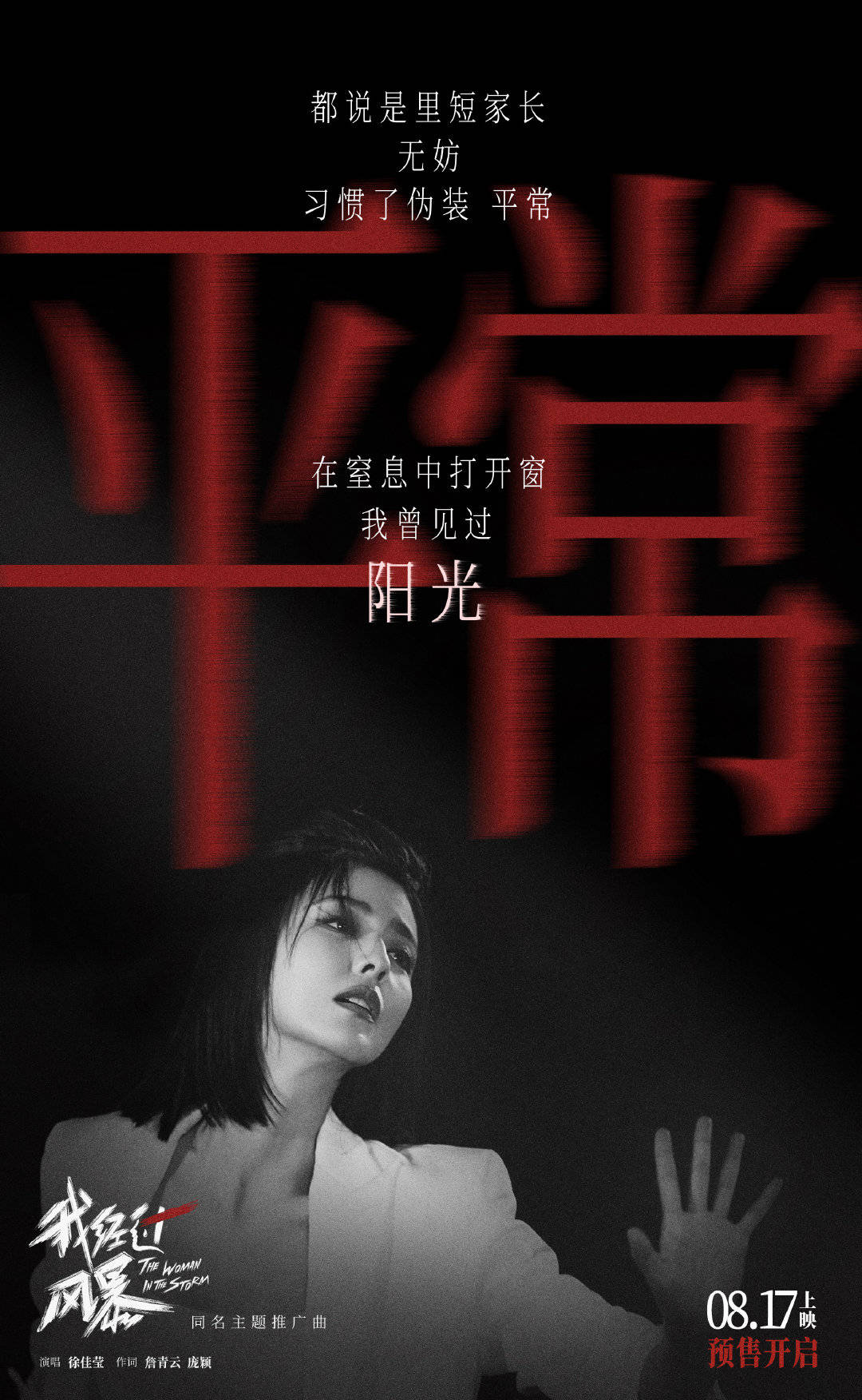 影片同时发布了徐佳莹演唱,佟丽娅出演的同名主题推广曲MV。佟丽娅身着白色西装,深刻演绎出一个在风暴中成长的女人。