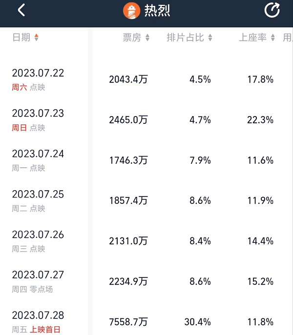 这种火爆程度是让大家感到意外的,很多影院经理都没有预料到,它的上座率会这么高,很多场次都满场,跟过年一样,这也导致了影院愿意给它加场。
