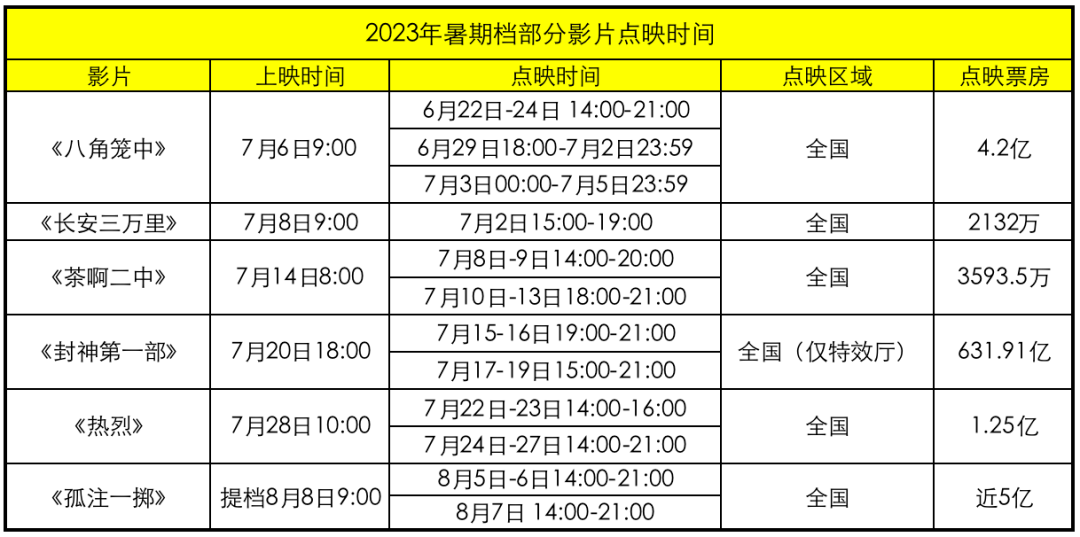只是每部影片点映或多或少有自己的策略,譬如 《封神第一部》仅在IMAX厅、杜比厅等特效厅放映;或是 《长安三万里》尽在适合亲子时间的周末下午开始点映。