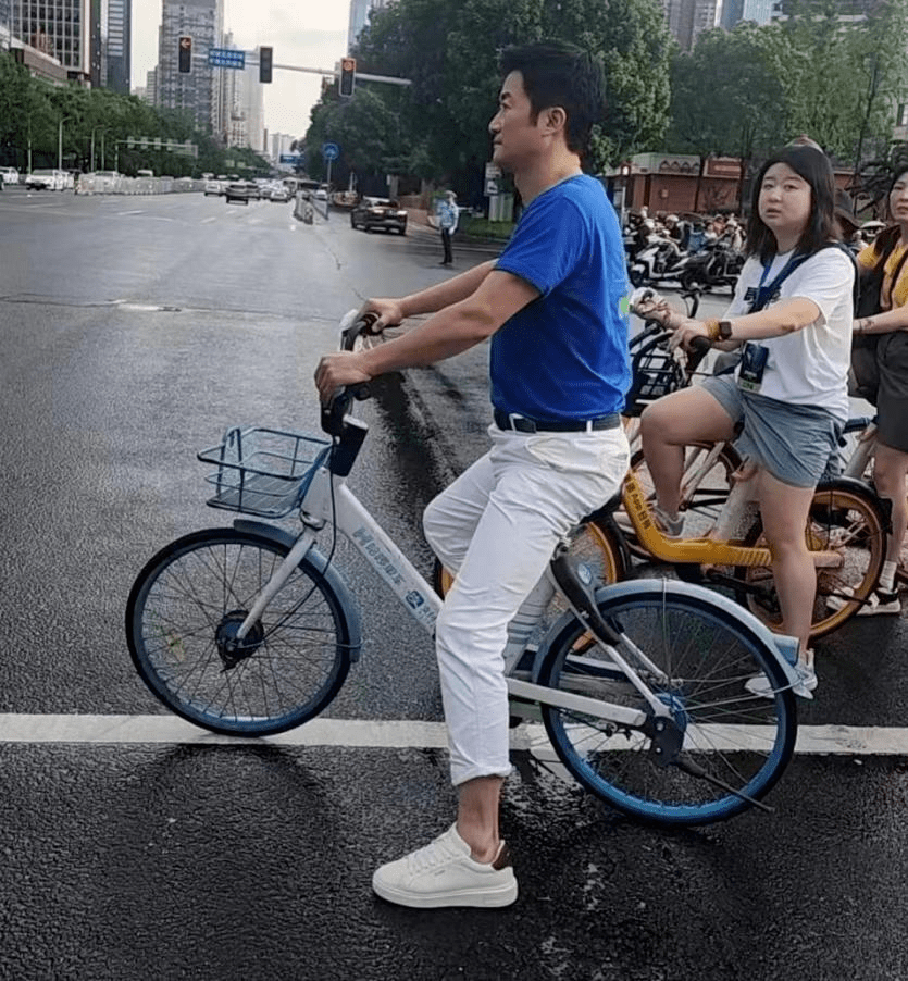 *为了赶《巨齿鲨2》路演,吴京骑共享单车去现场