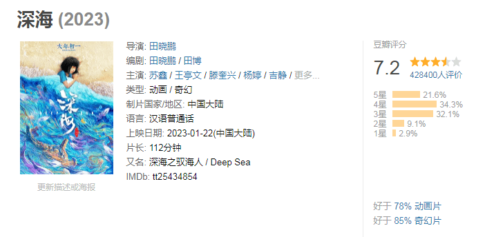 原本《深海》国庆档就该上了,但审核没过,被打回修改。