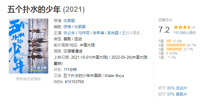 2021年的暑期档,一部默默无闻的电影《五个扑水的少年》上映。
