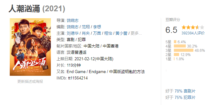 尽管票房的大头被《唐探3》和《你好,李焕英》瓜分,但它最后也有接近8亿。