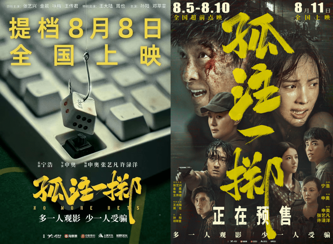 《孤注一掷》原计划点映持续到8月10日,之后无缝衔接8月11日的正式公映。但是,8月7日凌晨,片方官宣影片提档至8月8日(周二)正式公映。影片在点映阶段的优异表现,应该是促使片方提档的主因。