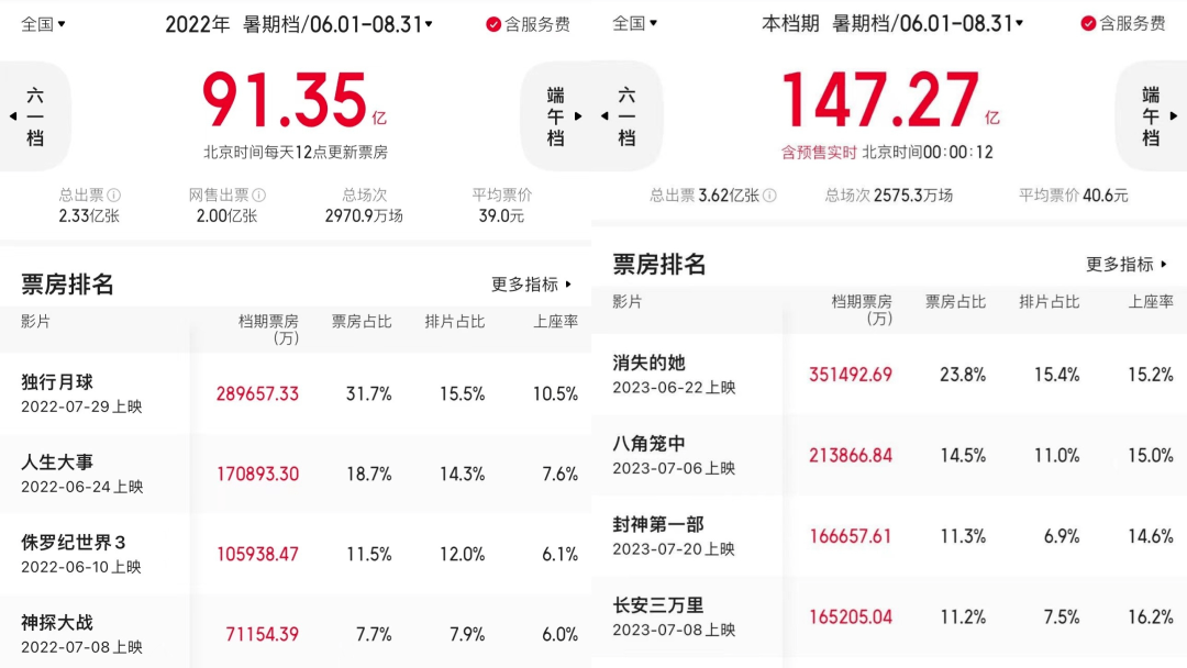 2023年的电影暑期档进入最后一个月,档期目前累计票房为147亿元,相较去年同档91亿元的成绩,属于飞跃式进步。当然,今年暑期档中出现的点映和公映界限模糊,点映影片高排片招致公映影片不满的问题,也值得管理部门去研究和调节。