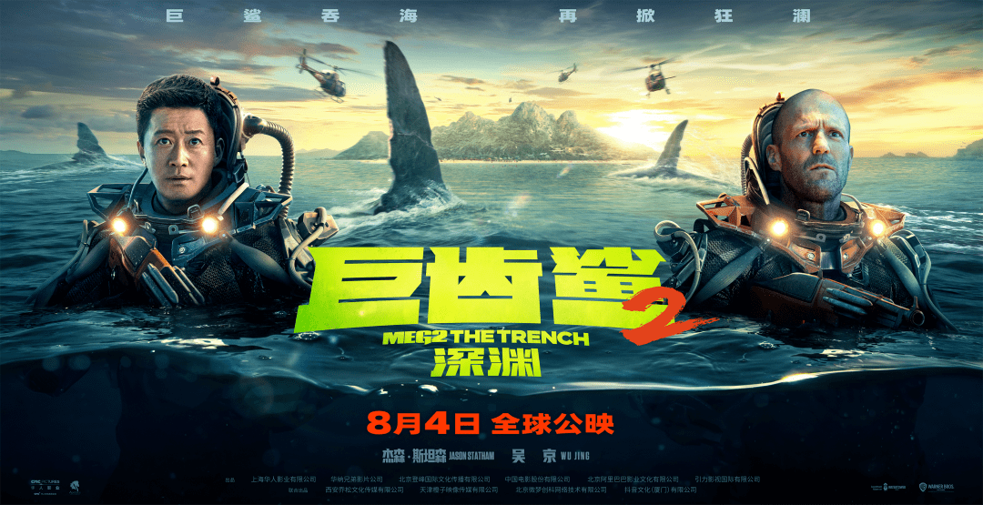 《巨齿鲨2》是一部中美合拍片,吴京与杰森·斯坦森联手打击深海巨兽。虽然是合拍片,但《巨齿鲨2》的成片风格与创作思维,仍然是典型的好莱坞模式。大明星、大场面、大怪兽,商业元素一个都不少。