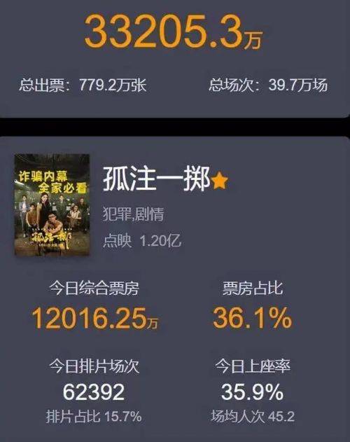 原标题:电影《孤注一掷》点映票房超3亿 申奥执导,张艺兴金晨领衔主演