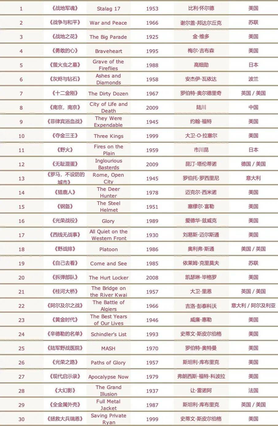 (《综艺》(Variety)“世界最佳战争影片30佳”榜单)