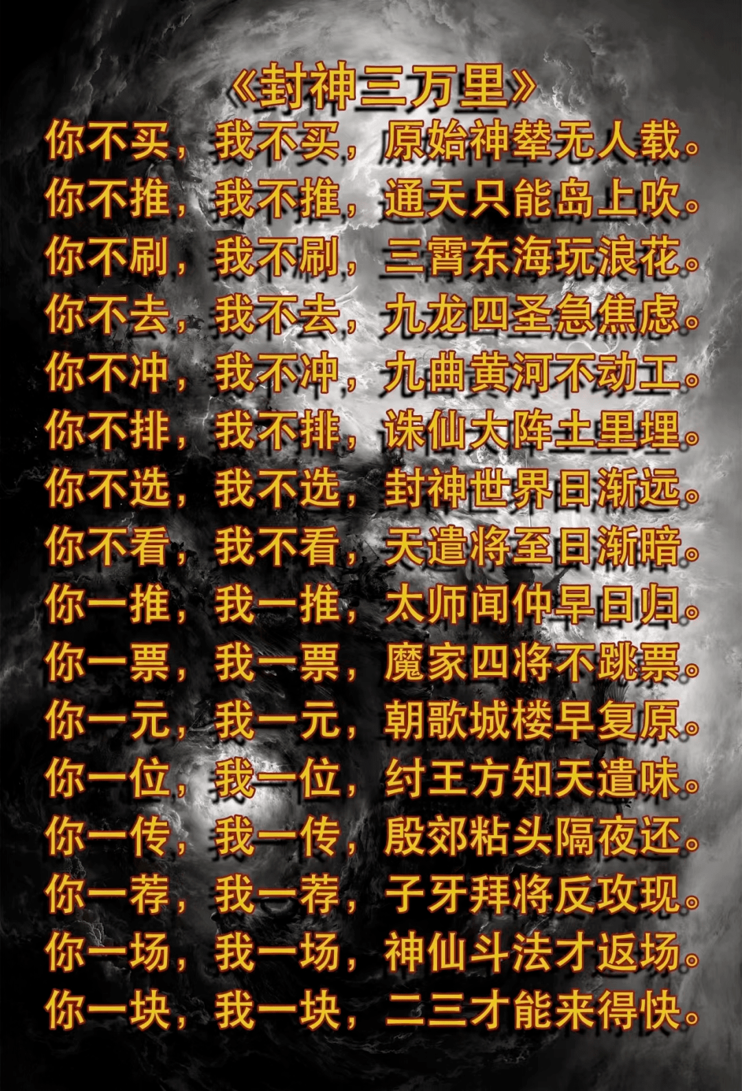 “闻太师回朝”这个点,是网友自发想的;“封神三万里”的歌谣——你一块、我一块,二三才能来得快——是网友自发做的;哈基米、养成系质子团、嗑CP,也是乐子人的自娱自乐。这段时间,《封神》的主创在做什么呢?跑路演。