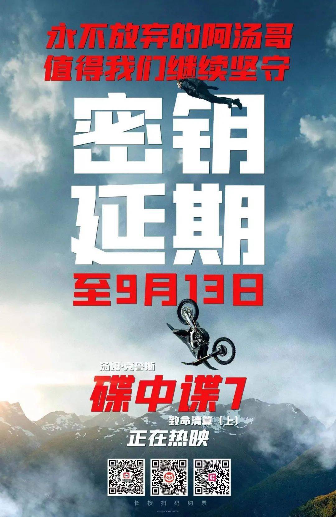 由汤姆·克鲁斯主演的电影《碟中谍7:致命清算(上)》宣布中国内地延长上映至9月13日。