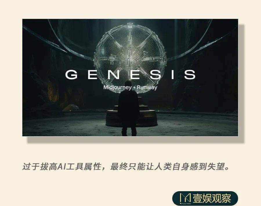 “用AI创作”和“由AI创作”明显是两个完全不同的概念,《预告: 创世纪》的创作工序中,AI更像是一个新颖的工具箱,可以为像Neubert这样的创作者提供制作堪比商业大制作的便捷工具,有一天这类创作可能会与好莱坞相媲美,但关键要素是:概念、故事、画面、剪辑、音乐,仍然是“一个人”完成的。
