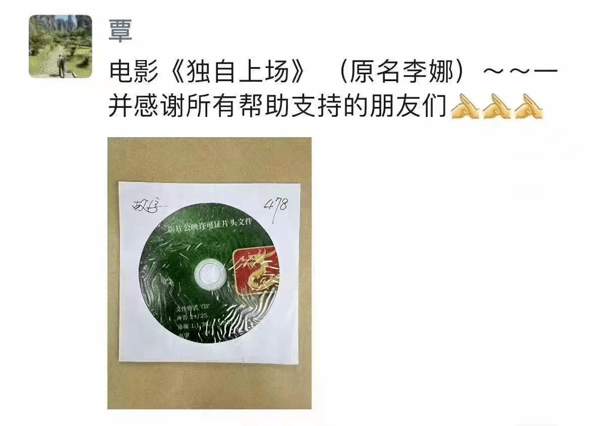 最近,嘉映影业董事长覃宏朋友圈透露,更名为《独自上场》的《李娜》已经过审,拿到了公映许可证,俗称“龙标”。