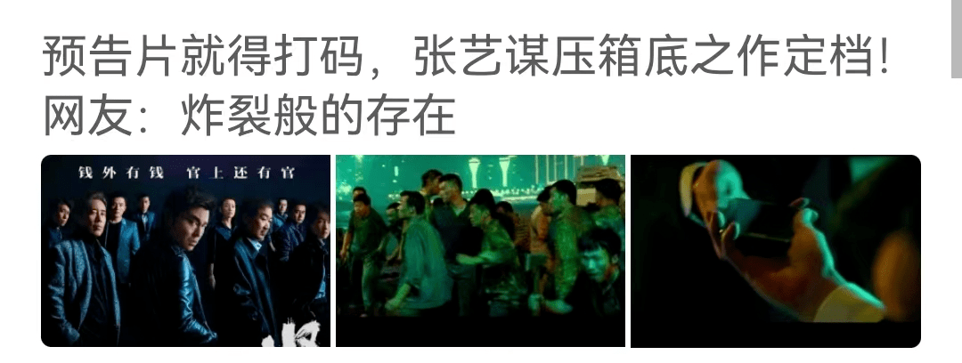 或者说是张艺谋的压箱底之作,预告片就要打码,还是炸裂般的存在。