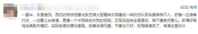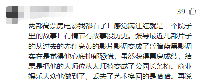 甚至有观众说虽然有票房成绩,结果是把他的大师位从太师椅变成了公园长条椅。