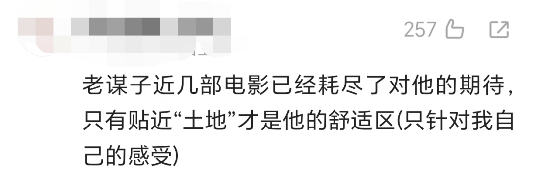 近些年的几部电影也让观众对他不再期待,有些也认为张艺谋只有贴近“土地”才是他的舒适区。