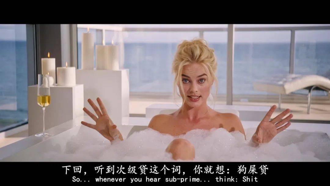 同年年底的商战电影《大空头》,罗比则在片中来了段一边泡泡浴,一边解释名词的性感解说。