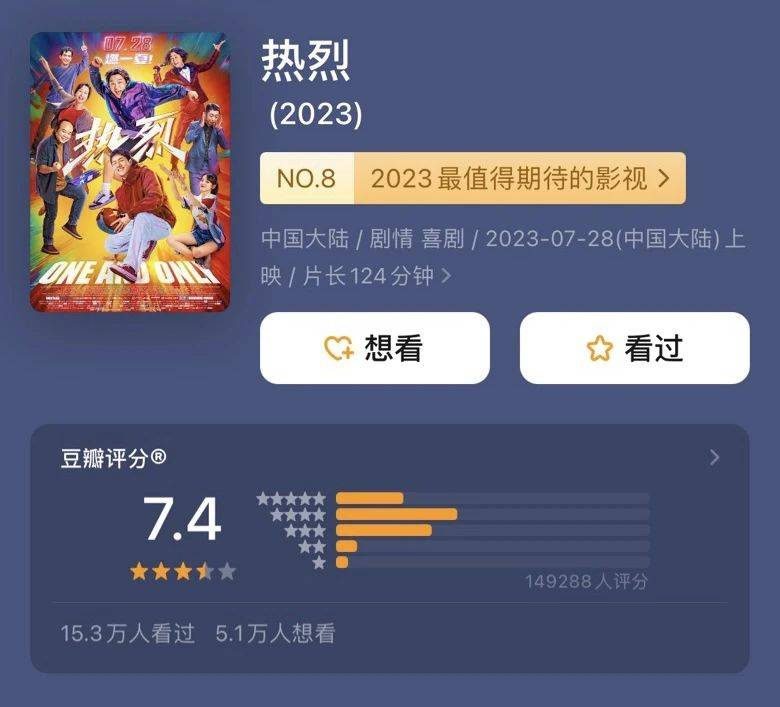 《热烈》前期主打口碑。提前观影的业内人士均给出了高分及高票房预测,再加上大鹏已经连续两部电影都达到豆瓣7.7分,导演口碑有所提升。这一定程度上提高了观众对电影的预期。