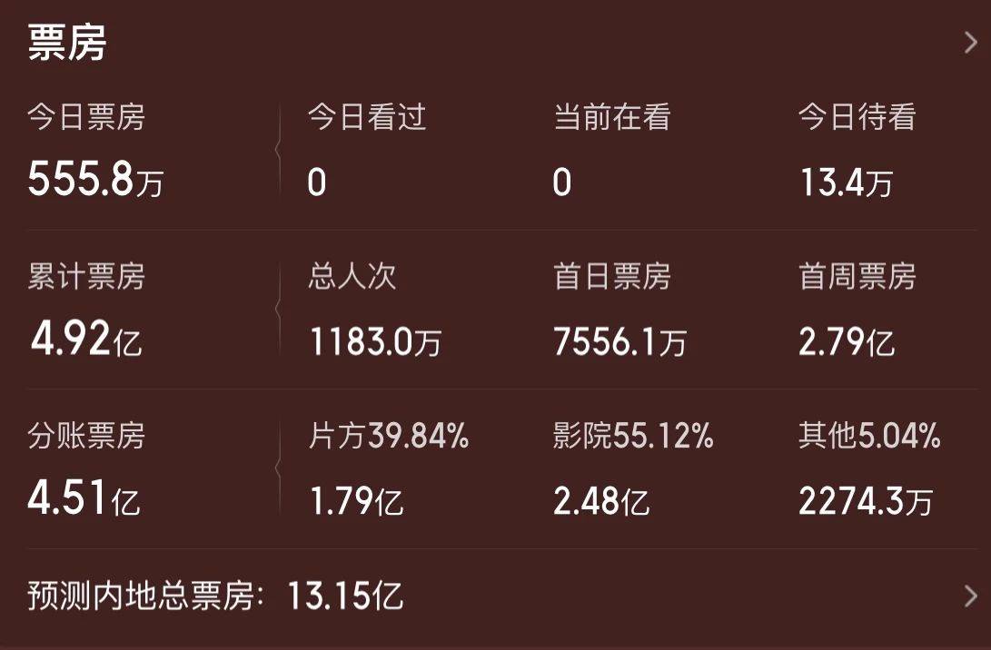与低于预期一起来的,是后劲不足。上映5天,其预测总票房已经从最初的15亿下降到了13亿。