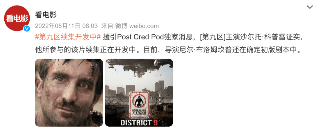 去年,《第九区》的主演沙尔托·科普雷还确认,续集正在开发。