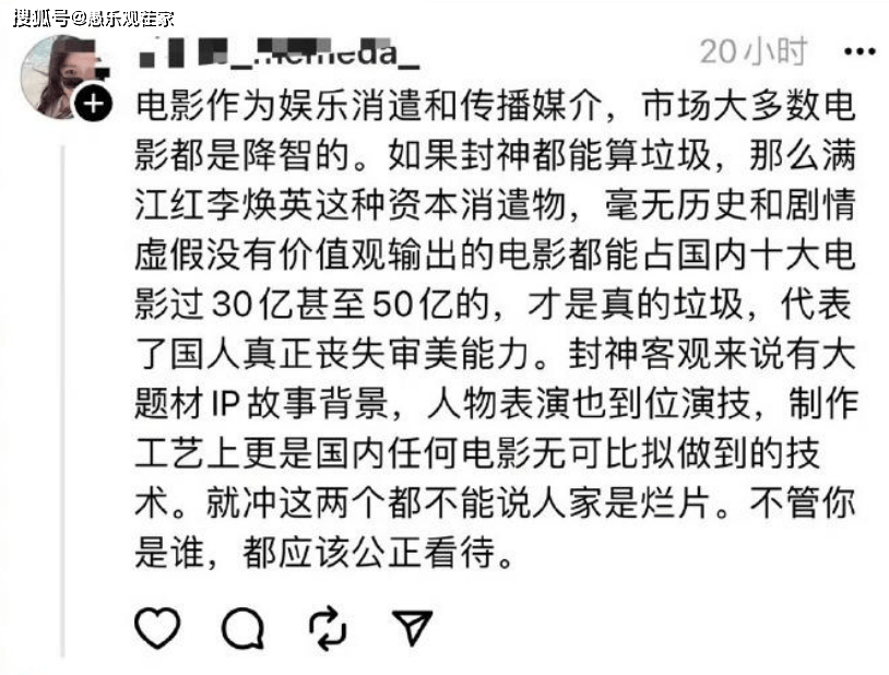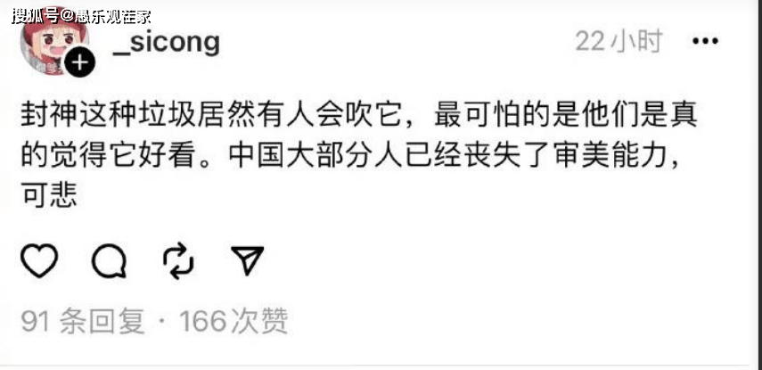 王思聪直言表示《封神》就是一部烂片,同时表示国内的观众审美太烂,把烂片当成神作。言辞十分犀利,不少喜欢电影的观众看后都十分生气。