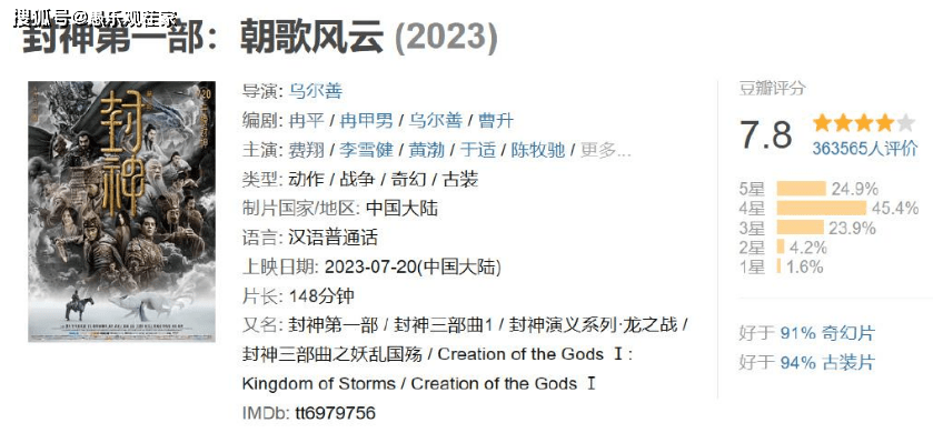 整体来说,乌尔善的《封神》确实存在问题,但各方面的表现都远超及格线,在豆瓣收获了7分以上的高分。