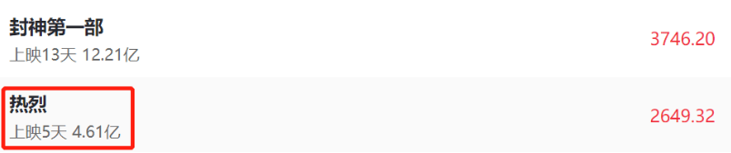 近段时间,乌尔善的电影《封神》上线,各位网友纷纷开始关注,仅仅两三天该电影就创造了12亿票房的惊人成绩,而同期上映的《热烈》,上映后5日的累计票房仅有前者的三分之一。