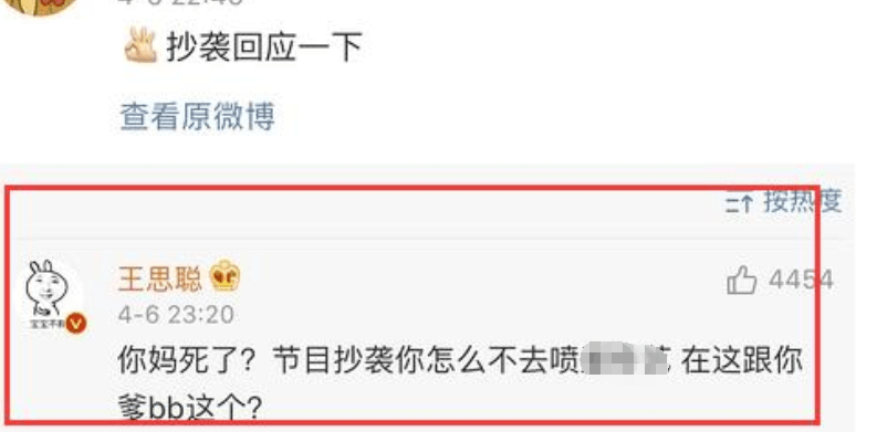 有时候网友们欣赏王思聪的率性,但有时候王思聪说出的话也让网友们不舒服,比如他在网上不止一次骂粗话,直接骂网友“你妈死了”。