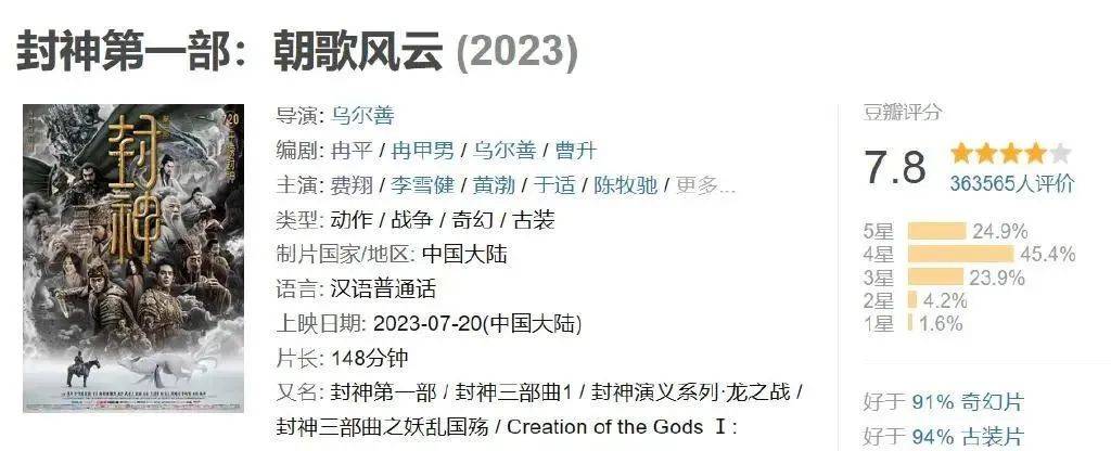 近日,《封神》第一部的票房已经破12亿。这部电影虽然前期充满争议,但后期的票房和口碑都在慢慢回暖,如今在某平台的评分更加高达7.8分。