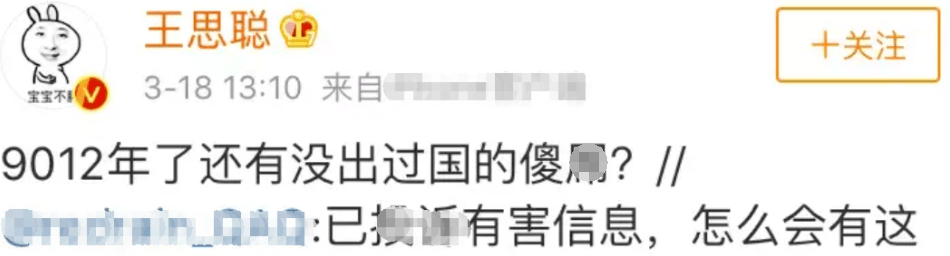 还说出“没出过国的傻diao”这种具有侮辱性的话。