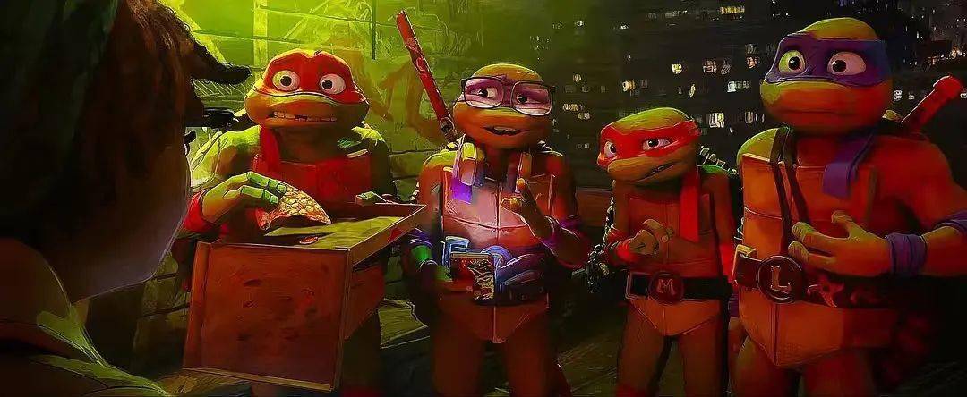 高楼林立的纽约市、繁华喧嚣的布鲁克林大桥、夜深人静的街道,而在这座城市的地下,正是这座城市的英雄——忍者神龟的秘密基地。神龟们冲出下水道井盖,聚集在天台嬉戏打闹,拉斐尔和米开朗基罗玩起“水果忍者”,用武士刀和忍者之心飞镖轮番切西瓜,一旁的多纳泰罗拿着手机为大家录像