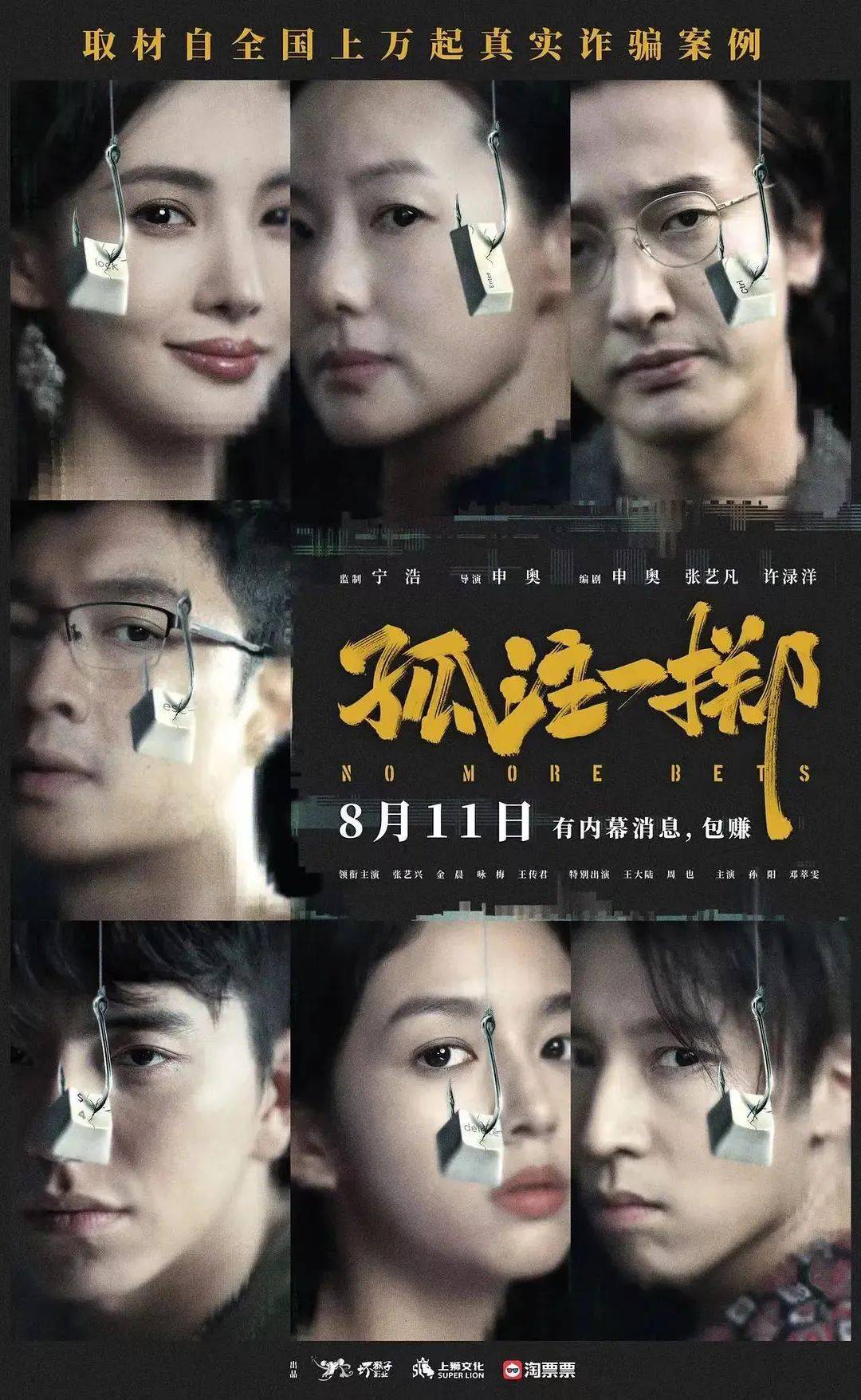 《孤注一掷》是由宁浩监制,申奥编剧执导,张艺兴、金晨,咏梅,王传君领衔主演,王大陆,周也特别出演,孙阳,邓萃雯主演的反诈骗犯罪片,于2023年8月11日在全国公映。