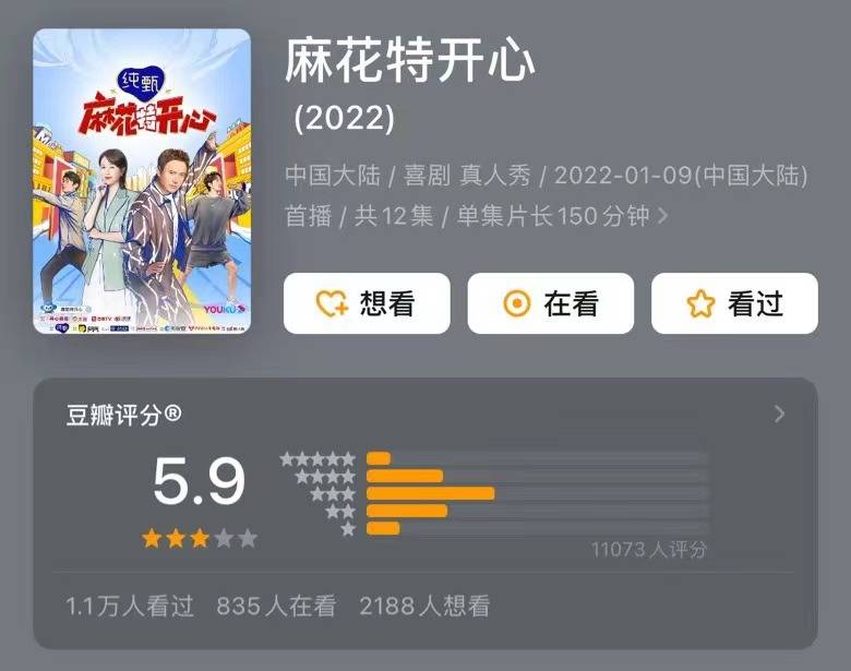 但这档综艺最终豆瓣5.9分,市场反响也不热烈,不仅没能捧出新人,还暴露了麻花做喜剧的缺点——过时、不创新、爱煽情。