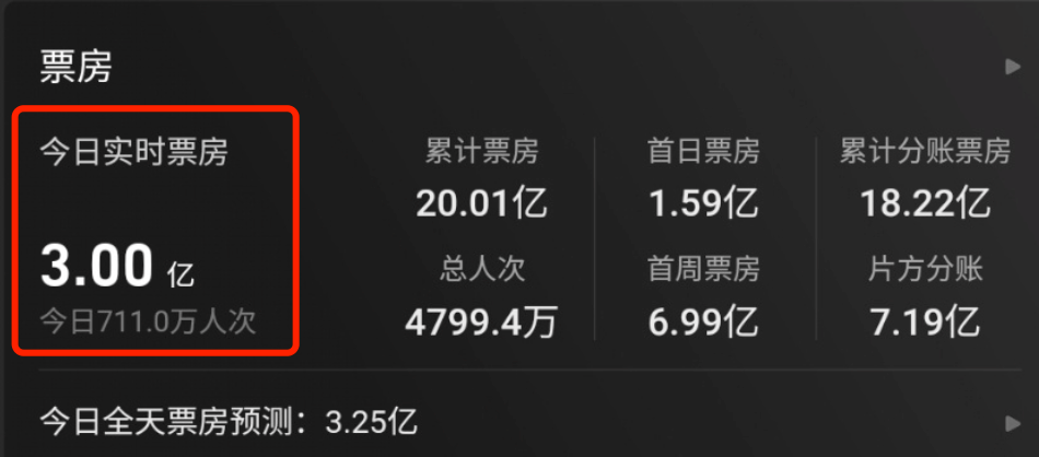 由于票房需要分成,超过一半的票房要分给影院,另外还有分给发行放,也就是帮忙卖票的平台,剩下的部分才是自己的。