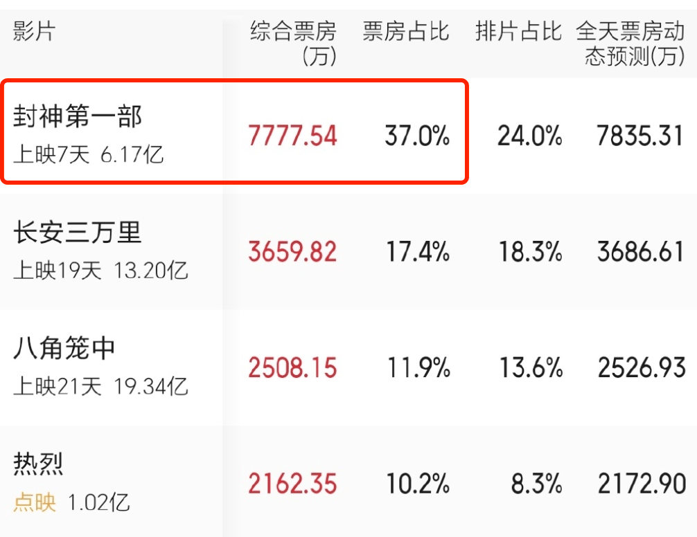 为什么这么说呢?封神于7月20日上映,上映7天,目前的票房才破6亿。