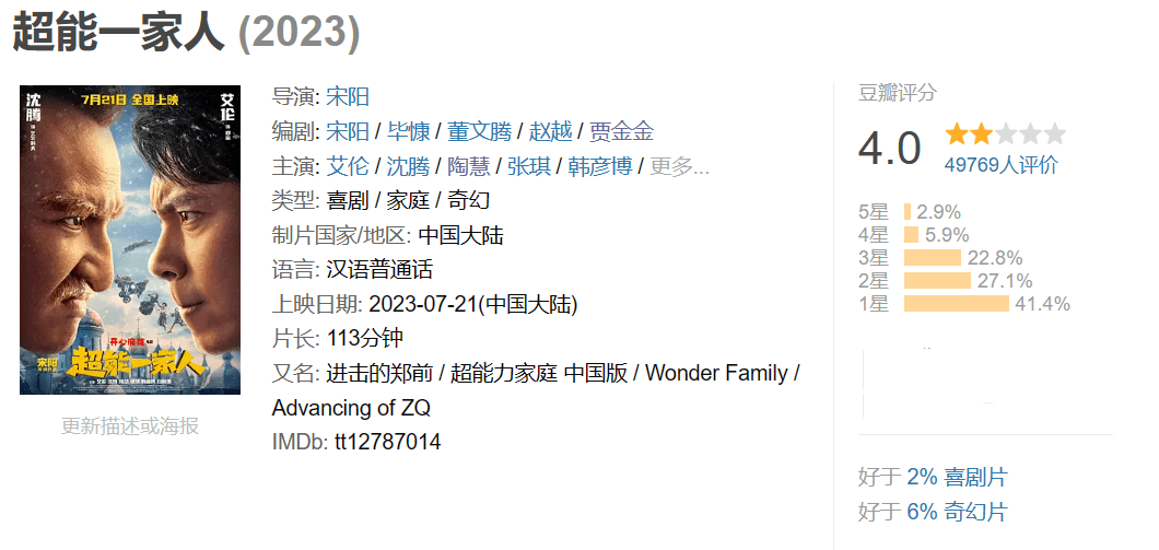 这类影片难免让观众“期望越大、失望越大”。《封神第一部》调动不起大众情绪,《超能一家人》上映后口碑闪崩。