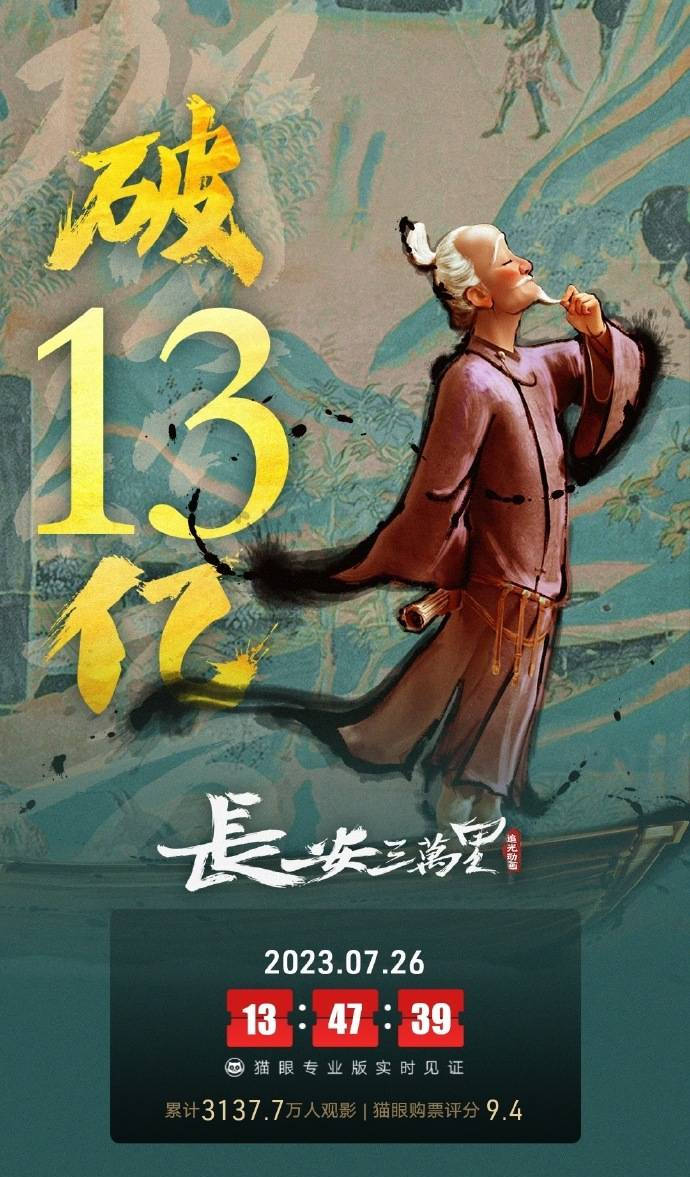 原标题:动画电影《长安三万里》上映19天 总票房破13亿