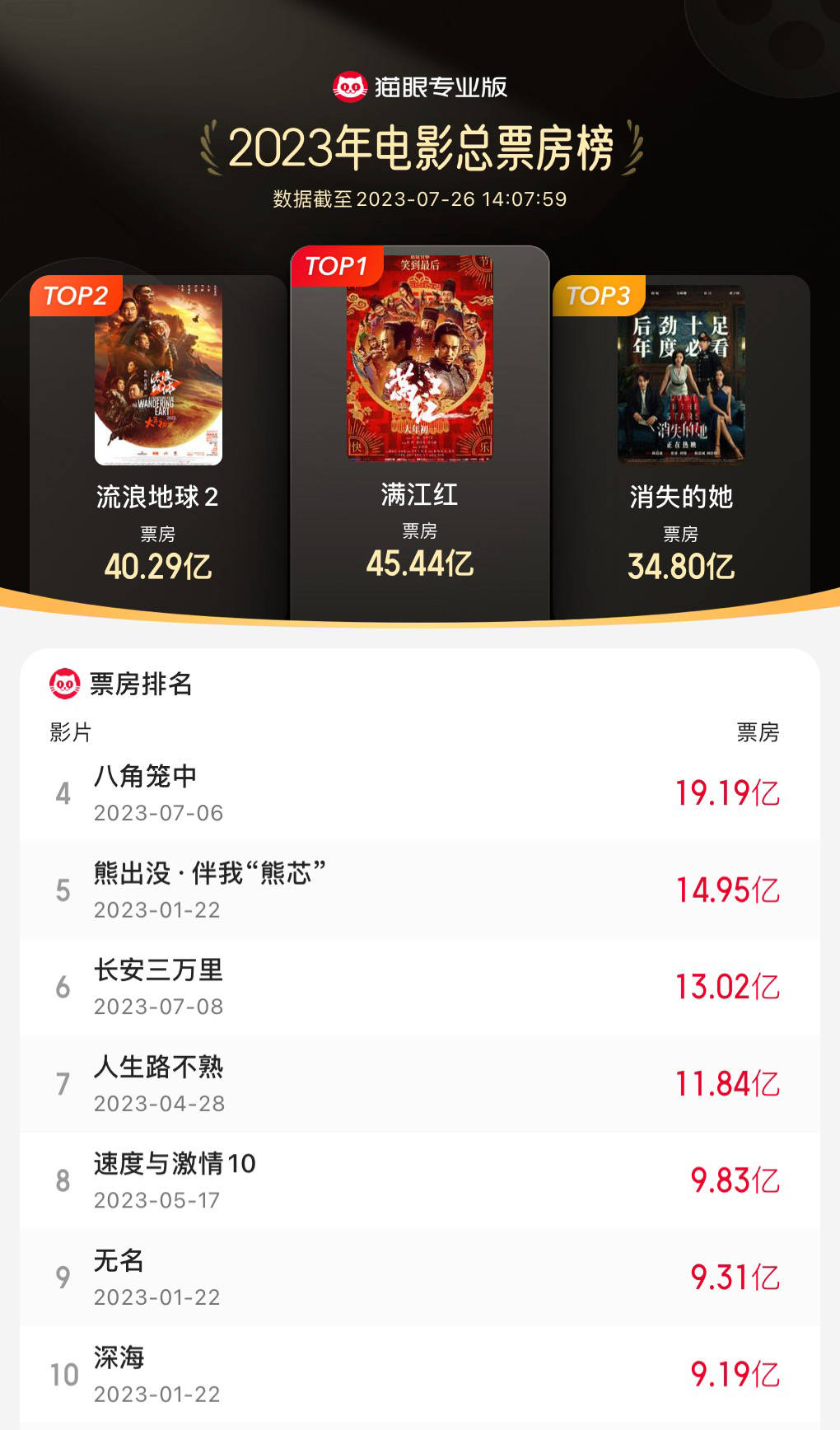 原标题:《长安三万里》上映第19天累计票房破13亿 暂居2023年度内地电影票房榜第六