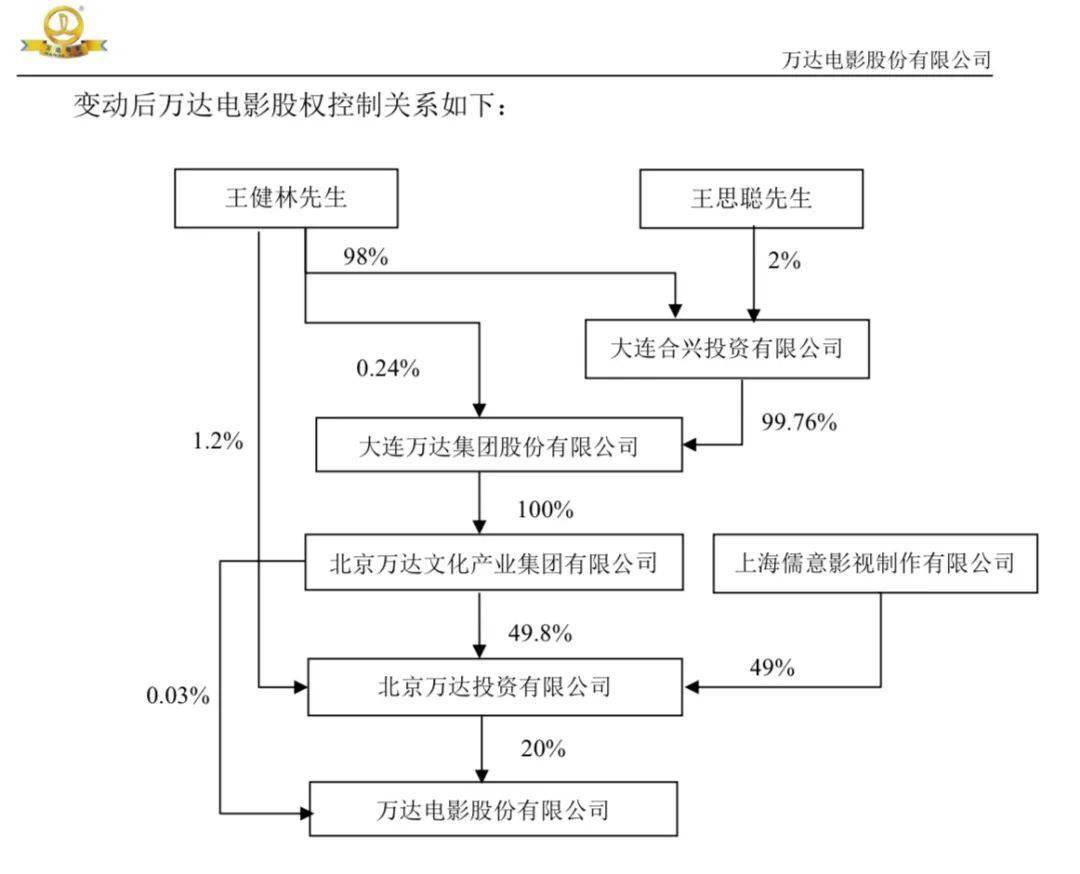 股权转让完成后,上海儒意将直接持有万达投资49%股份,成为仅次于万达文化的万达投资二股东。而由于万达投资是万达电影的控股股东,上海儒意也将以间接控股的形式获得万达电影股份有限公司的9.8%股份。
