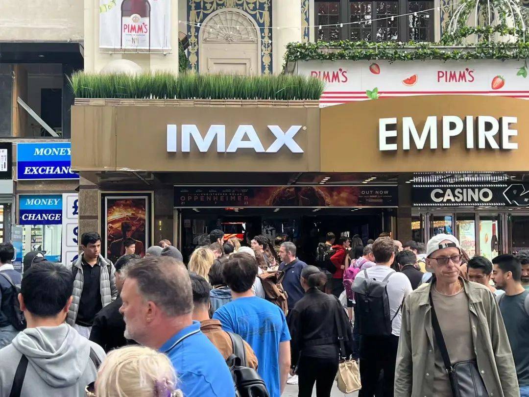 而正點观影的一位同事已在英国上映首日就去支持了。尽管在伦敦市中心,但影院给《奥本海默》的排片并不多,基本都给《芭比》了。