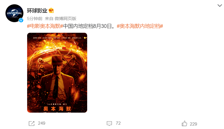 等不及的粉丝,早就在上周周末跑到了香港和澳门去看足本。据悉,香港是全亚洲唯一放映35mm胶片版《奥本海默》的地区,广东的诺兰粉可以前往香港先睹为快。