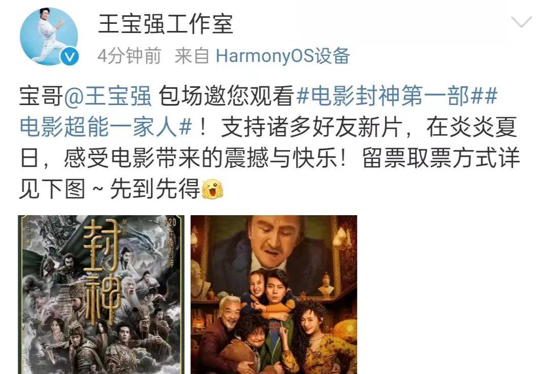 本以为王宝强会更卖力宣传《八角笼中》,助力早日突破20亿。然而,意想不到的是他没有宣传自己的电影,而是为《封神》和《超能一家人》包场。